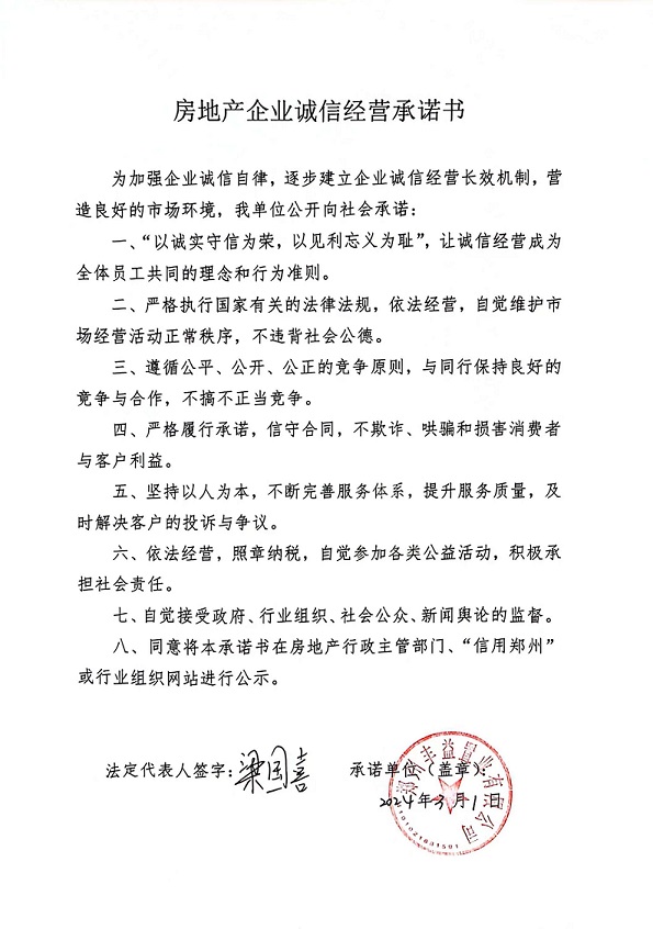 房地產(chǎn)企業(yè)信用修復(fù)承諾書公示