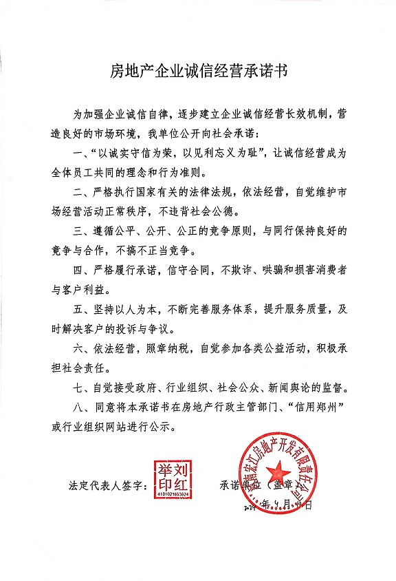 房地產(chǎn)企業(yè)信用修復(fù)承諾書公示
