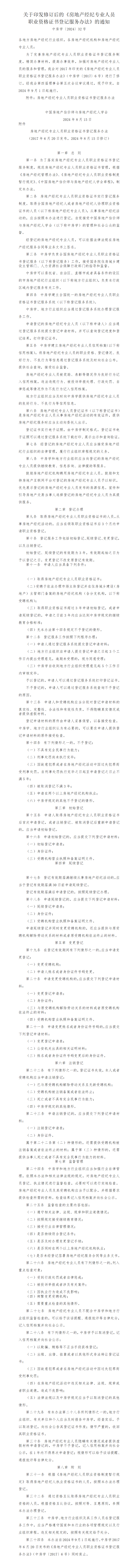 關于印發(fā)修訂后的《房地產經(jīng)紀專業(yè)人員職業(yè)資格證書登記服務辦法》的通知