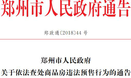 鄭州市人民政府關(guān)于依法查處商品房違法預(yù)售行為的通告