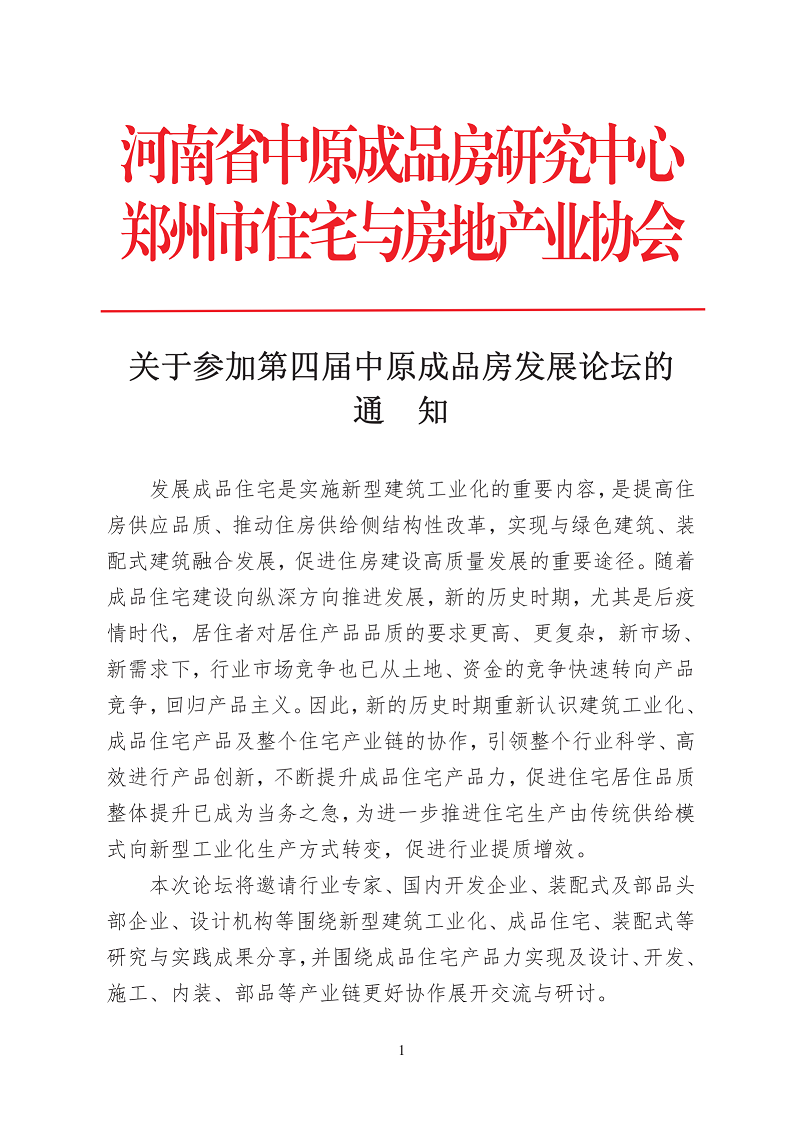 關(guān)于參加第四屆中原成品房發(fā)展論壇的通知