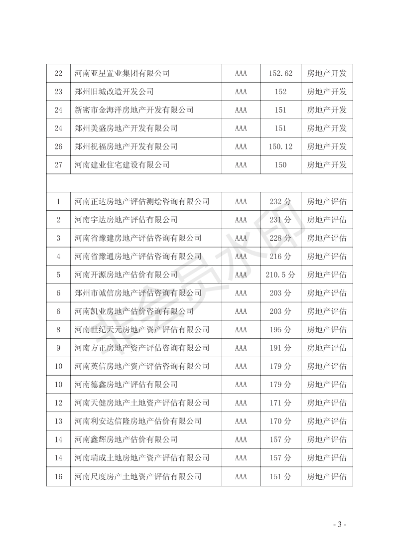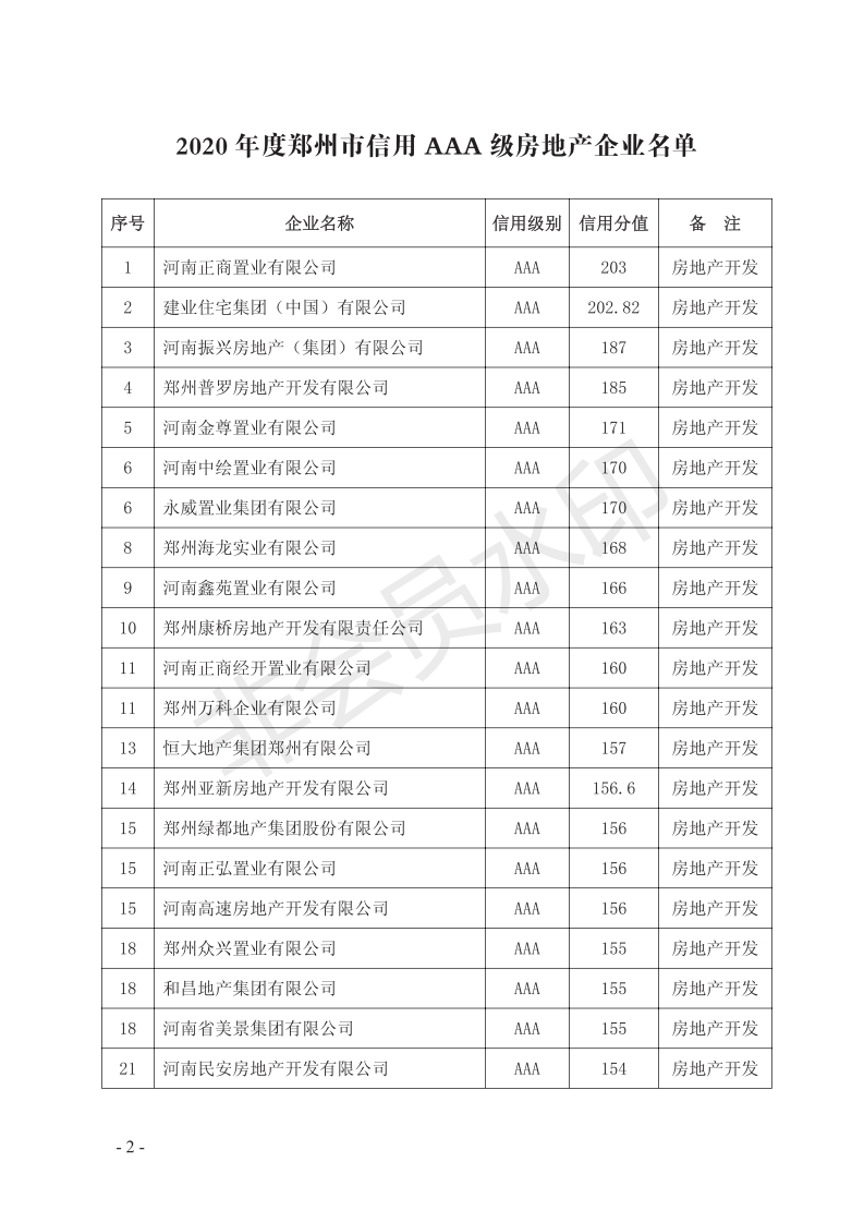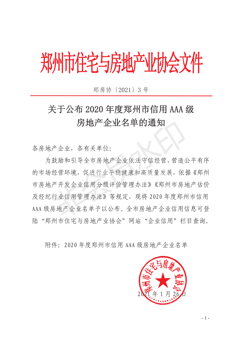 關(guān)于公布2020年度鄭州市信用AAA級(jí)房地產(chǎn)企業(yè)名單的通知