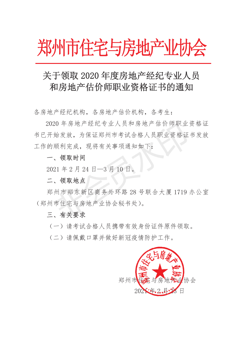 關(guān)于領(lǐng)取2020年度房地產(chǎn)經(jīng)紀(jì)人員和估價(jià)師職業(yè)資格證書的通知
