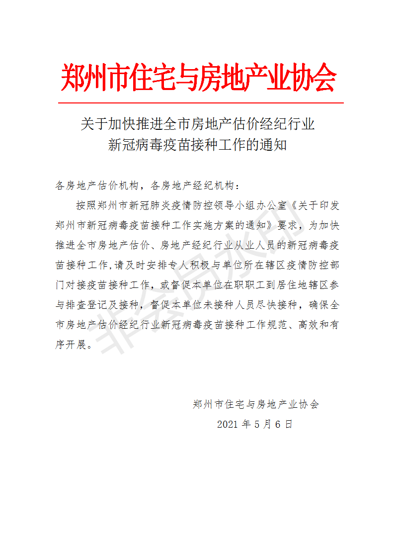 關(guān)于加快推進(jìn)全市房地產(chǎn)估價(jià)經(jīng)紀(jì)行業(yè)新冠疫苗接種工作的通知