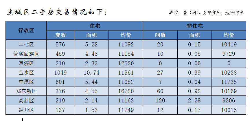 鄭州全市二手房共成交5273套(間),成交面積55.8萬平方米,成交均價10262元/平方米;其中住宅二手房共成交4971套,成交面積51.47萬平方米,成交均價10335元/平方米。(備注:二手房均價是以評估指導價為計算依據(jù))