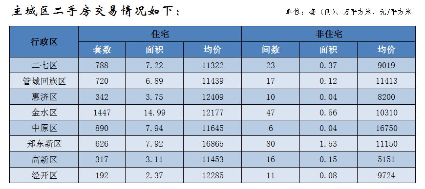 鄭州全市二手房共成交7190套(間),成交面積77.69萬(wàn)平方米,成交均價(jià)10604元/平方米;其中住宅二手房共成交6946套,成交面積73.1萬(wàn)平方米,成交均價(jià)10819元/平方米。(備注:二手房均價(jià)是以評(píng)估指導(dǎo)價(jià)為計(jì)算依據(jù))