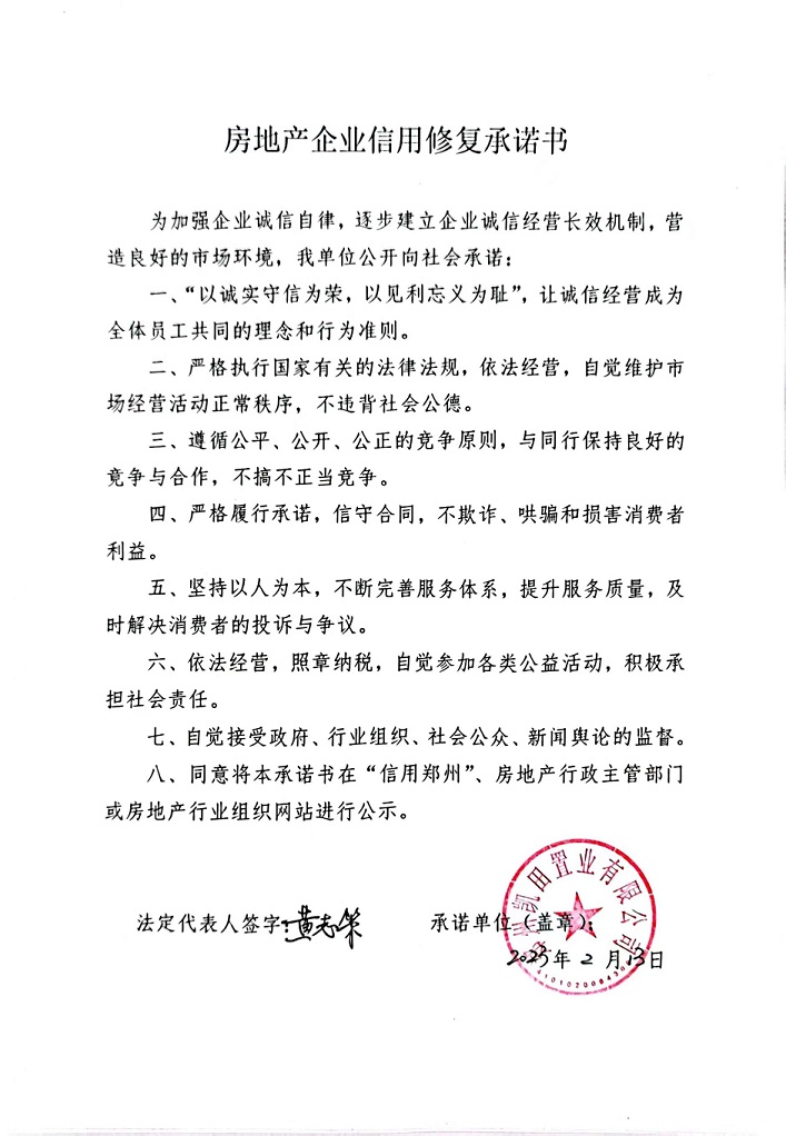 房地產(chǎn)企業(yè)信用修復(fù)承諾書公示