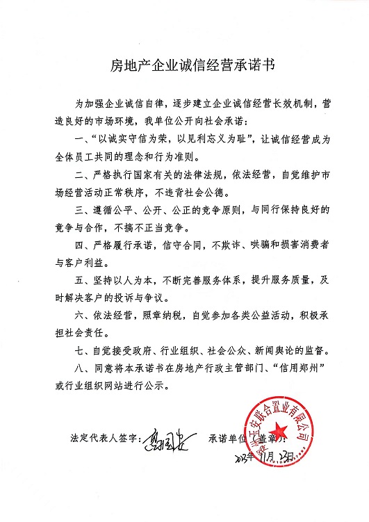 房地產(chǎn)企業(yè)信用修復(fù)承諾書(shū)公示